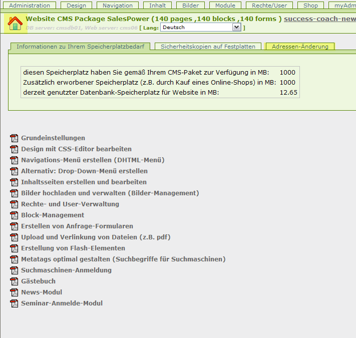2. CMS-Website: bitte in die CMS-Admin einloggen und auf das HOME-Symbol (Haus klicken) - danach auf die Lasche "Adressen-Änderung"