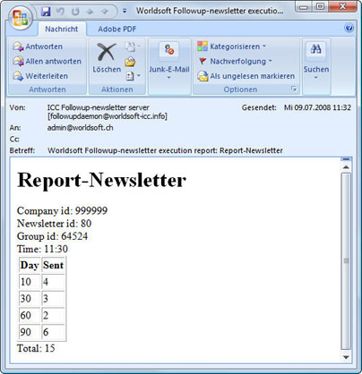 Immer wenn der Follow-Up-Newsletter ausgeführt wurde, erhalten Sie ein solches Email: