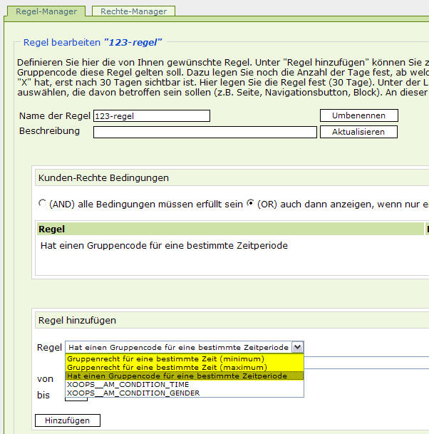 | Sie können jetzt beim Abo-Money-Maker auch ein Enddatum der Anzeige eingeben. Mit der Auswahl "Gruppencode für eine bestimmte Zeitperiode" können Sie mit einer Regel sofort das Startdatum und das Enddatum eingeben (bezogen auf den jeweiligen Gruppencode in der Adresse. Screenshot: